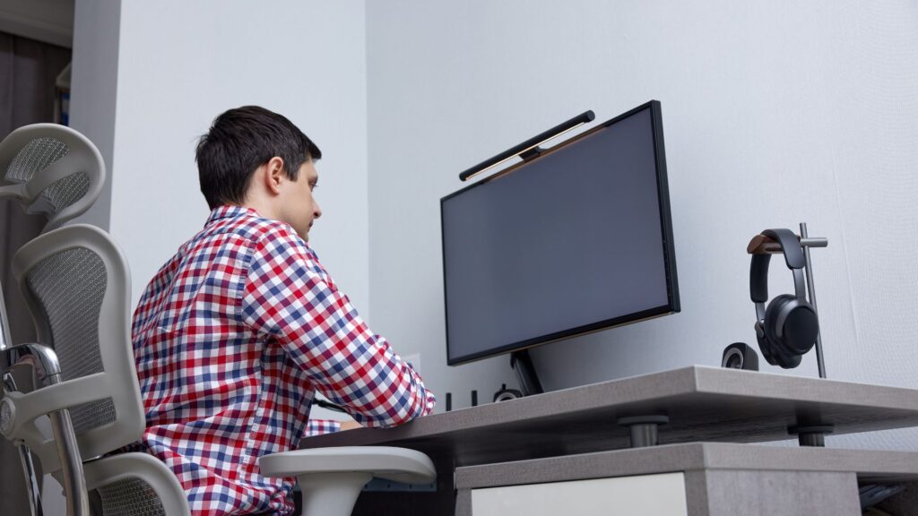 Justera stol, skärm och bord så att ryggen är neutral, axlarna avslappnade och skärmens överkant i ögonhöjd. Felaktig arbetsställning ökar fysisk belastning, vilket i sin tur påverkar mental prestation.